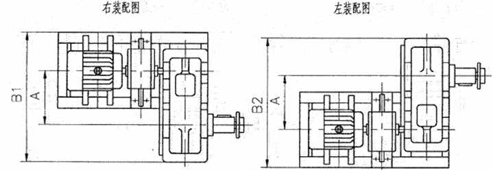 右裝—站在電動(dòng)機(jī)尾部向前看,減速器低速軸在電動(dòng)機(jī)的右側(cè)。